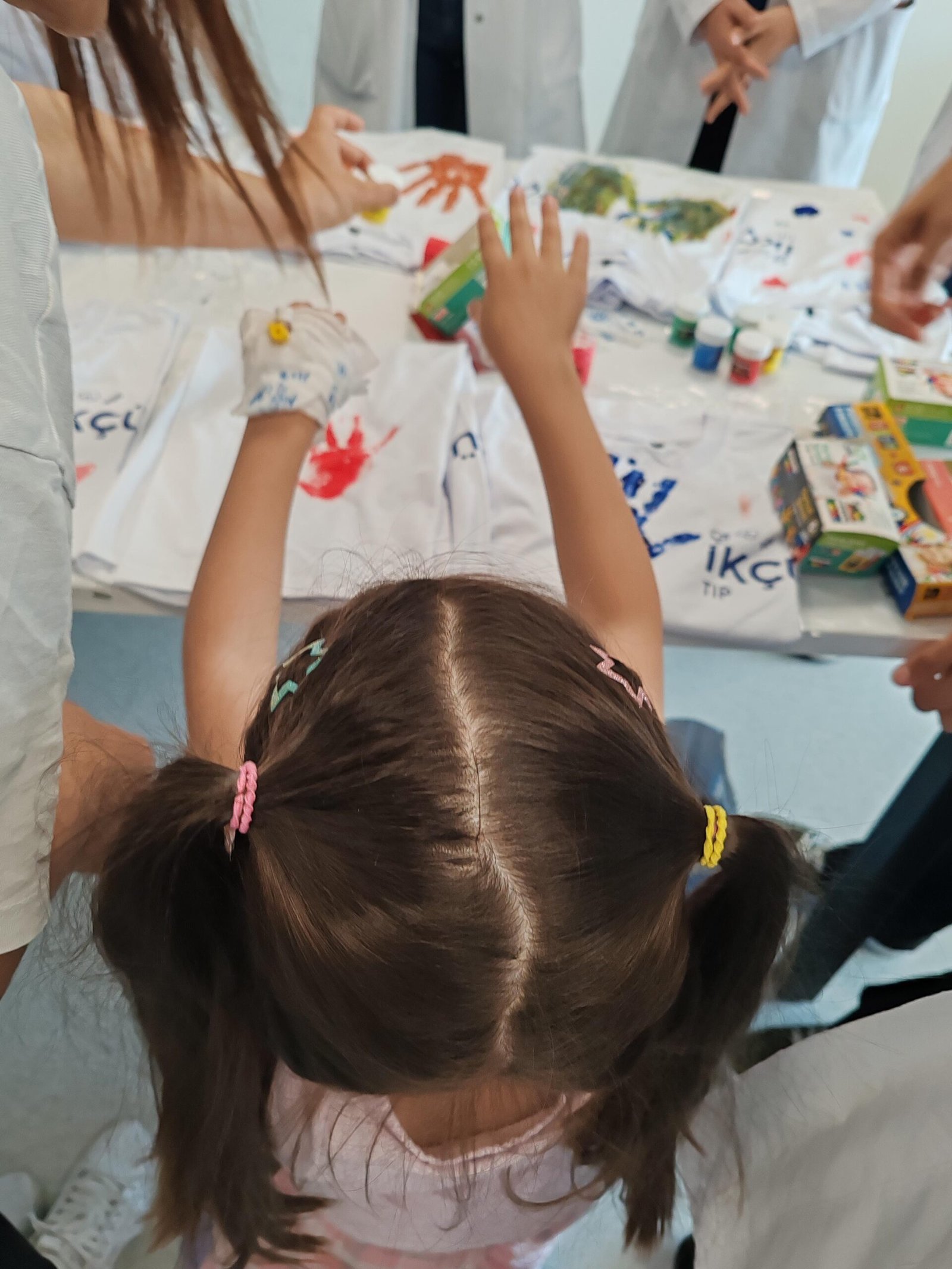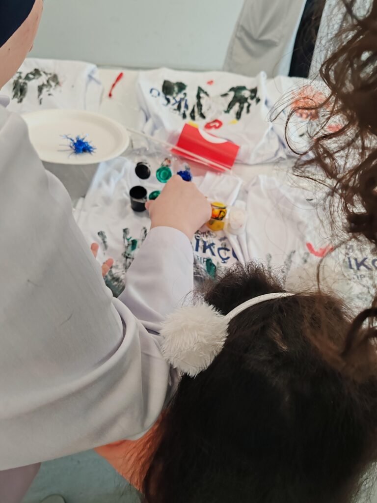 “Hastanelerin steril koridorlarında, hayal gücünün sınır tanımadığını bir kez daha gördük. Minik dostlarımızla birlikte beyaz tişörtleri birer tuvale dönüştürdük. Onların fırça darbeleriyle hayat bulan her figür, bize umudun ve direncin en saf halini hatırlattı. Birlikte sadece tişört boyamadık; hikayeleri, kahkahaları ve geleceğe dair kurulan güzel hayalleri paylaştık.”